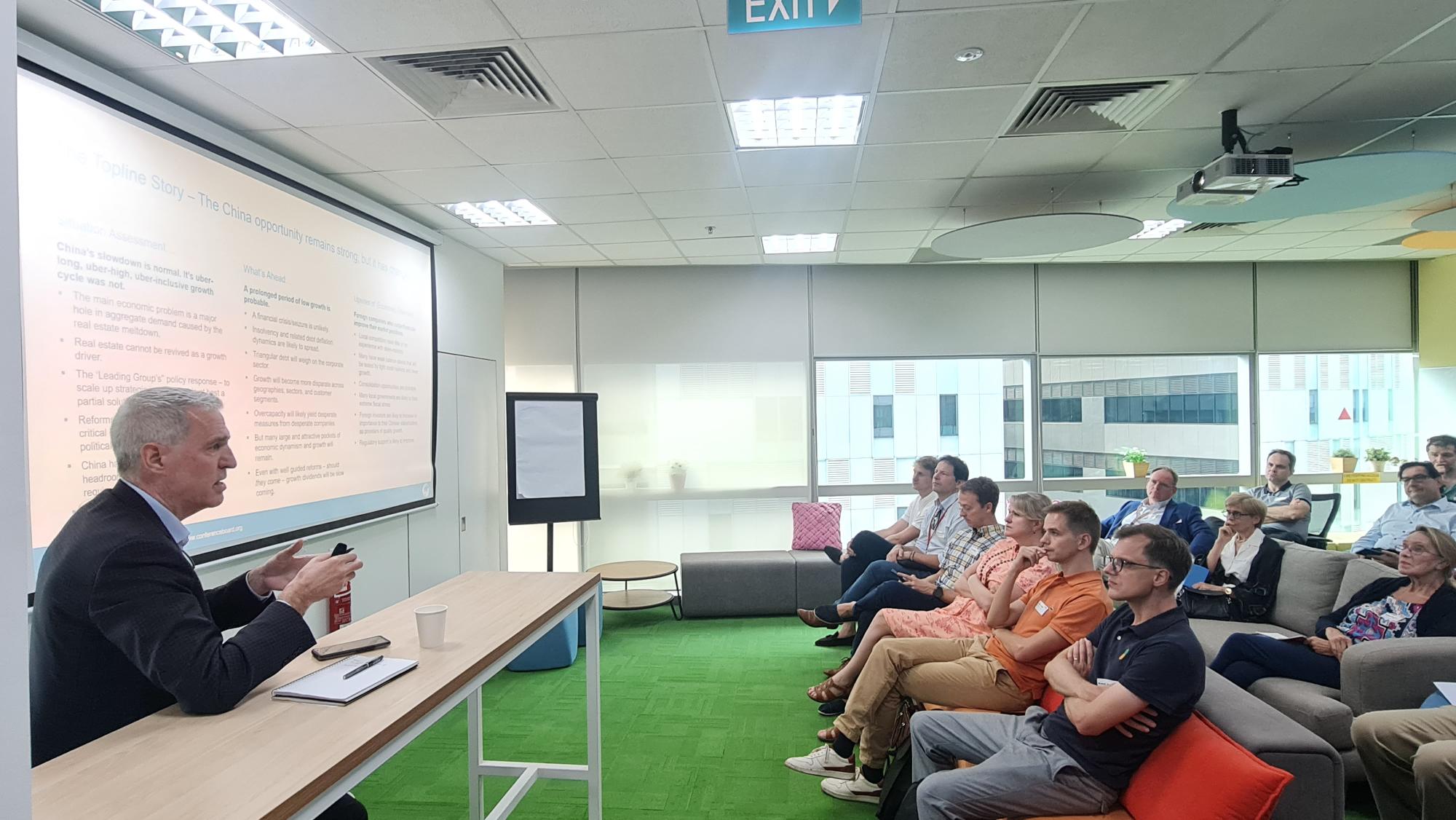 Our distinguished speaker, David Hoffman, Senior Advisor of The Conference Board of Asia gave a comprehensive presentation of the evolving economic and political-economy situation in China, the dynamics at work, and what the key trends portend for business conditions in China and for China engagement and geopolitical dynamics in the broader Asia region.