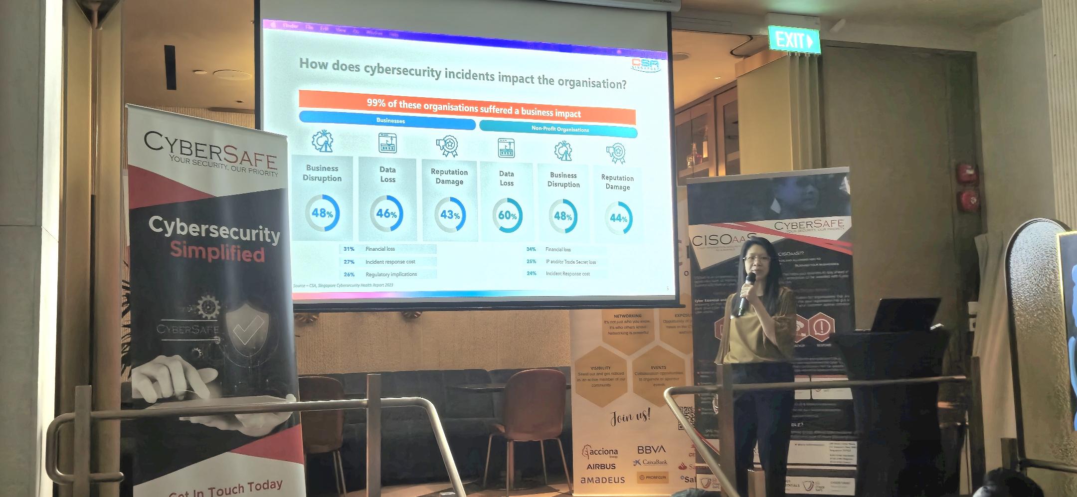 Keynote speakers Dave Gurbani , CEO of CyberSafe, and Veronica T. Director, Safer Cyberspace Division Cyber Security Agency of Singapore (CSA), delivered thought-provoking presentations on building trust and resilience in a digital-first world. Attendees gained valuable insights into key frameworks such as Cyber Essentials and the Cyber Trust mark, designed to enhance organisational cybersecurity. They also discovered how AI-driven threats can be addressed.
